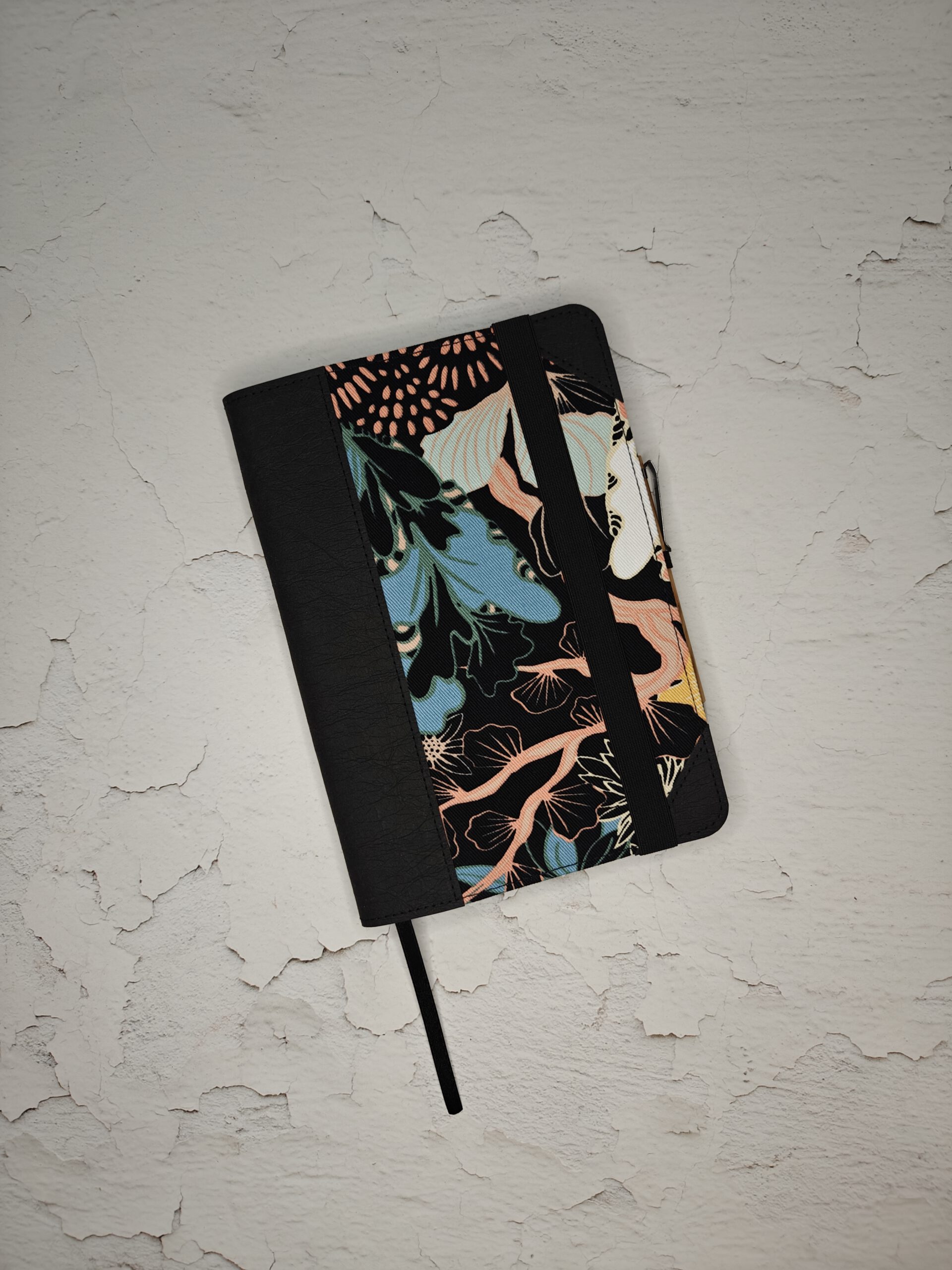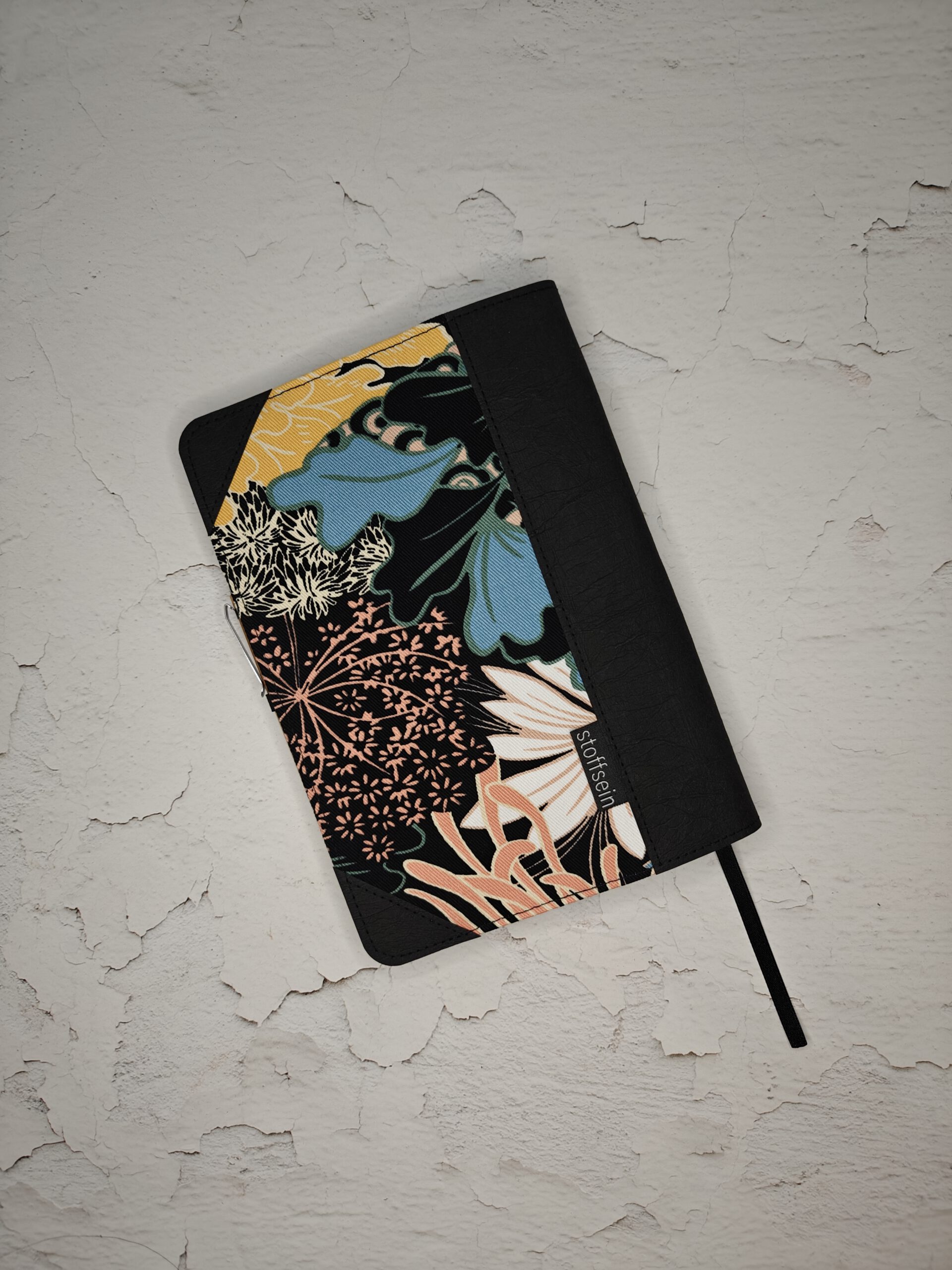 Wie wäre es mit einem hübschen Cover für Dein Notizbuch, Tagebuch, Skizzenbuch etc.!? Ein Gummiband hält es verschlossen, mit dem Lesezeichen kommst Du immer wieder an die gewünschte Stelle und auch für Deinen Stift ist eine Gummischlinge vorhanden.