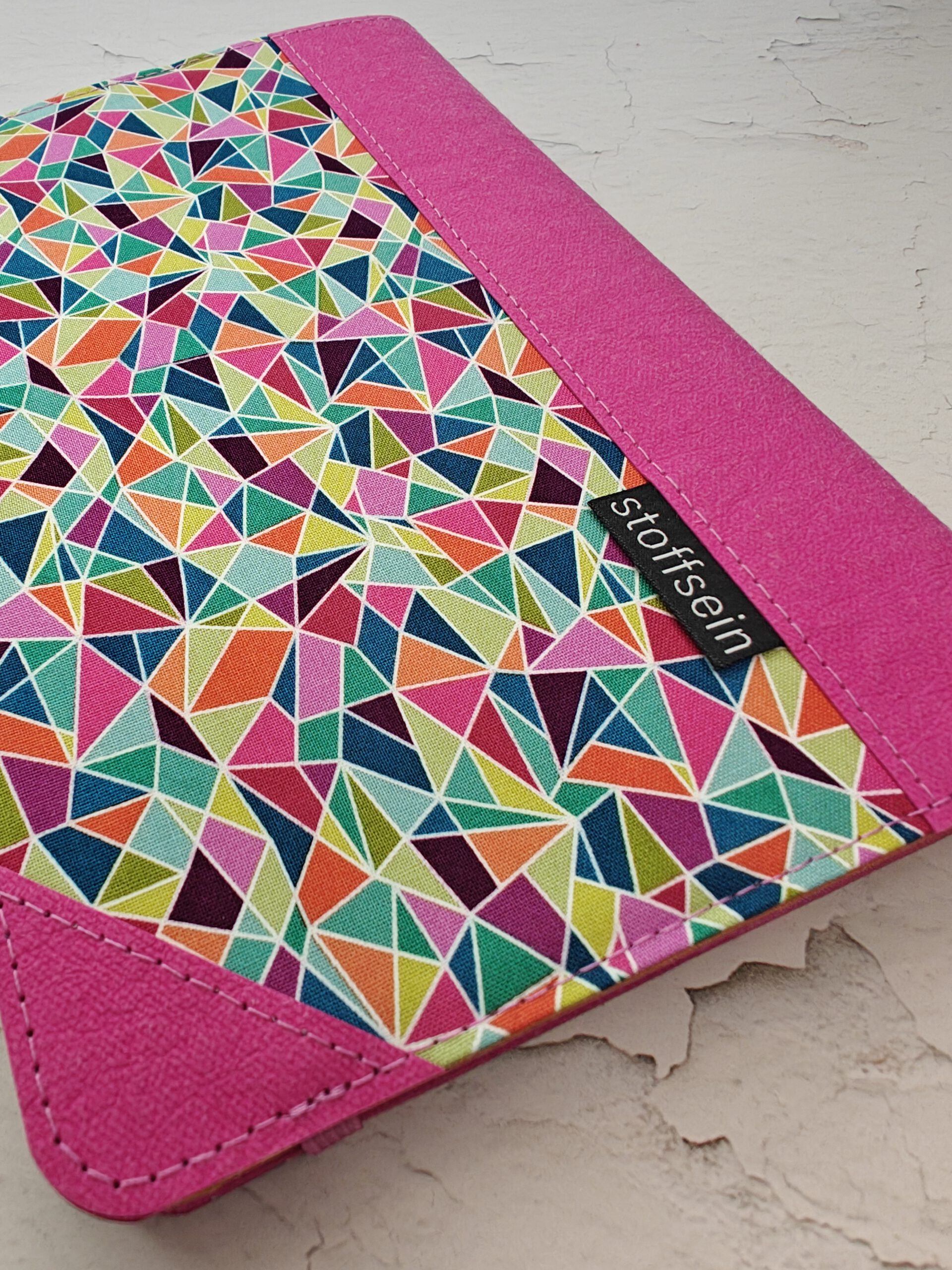 Genäht wurde es aus Baumwollstoff aussen und innen, mit Verstärkungen aus veganem Leder.